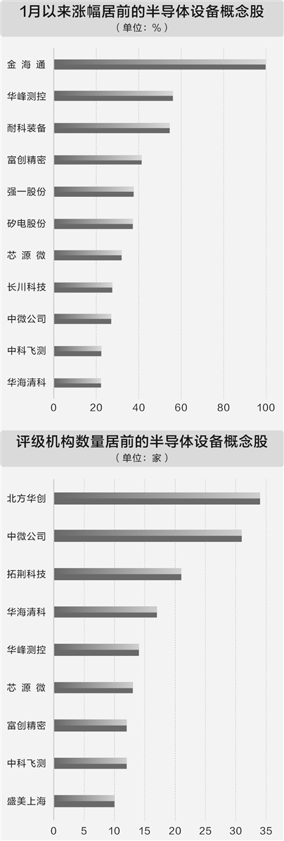 在產(chǎn)業(yè)鏈高景氣推動(dòng)下,半導(dǎo)體設(shè)備指數(shù)1月以來也頻頻創(chuàng)出歷史新高,累計(jì)漲幅超過20%。部分個(gè)股漲勢(shì)更加猛烈,金海通1月以來累計(jì)漲幅接近100%,公司預(yù)計(jì)2025年歸母凈利潤1.6億元至2.1億元,同比增長103.87%至167.58%。