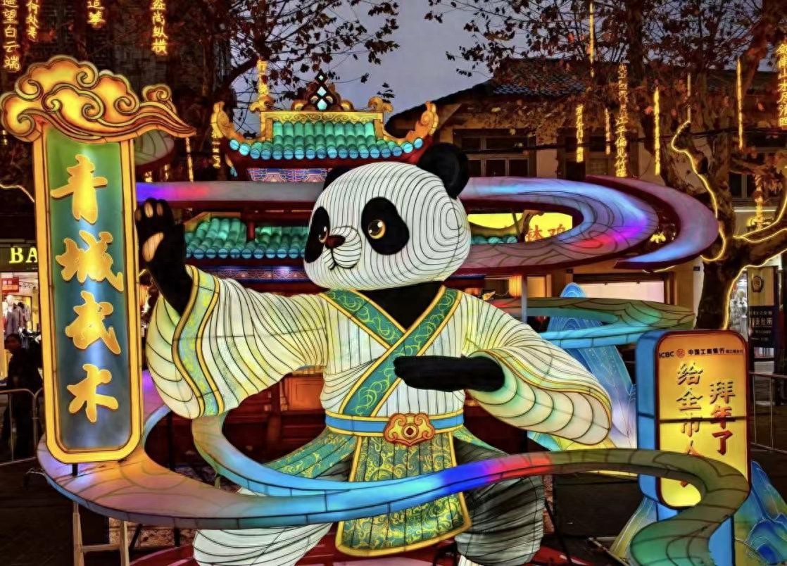 工行成都分行支持打造的“青城武術(shù)”熊貓燈組活靈活現(xiàn)